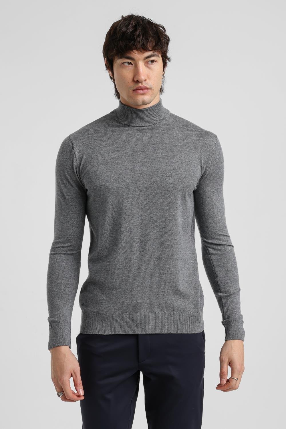Balıkçı Yaka Gri Melanj Regular Custom Triko 25FWM80003