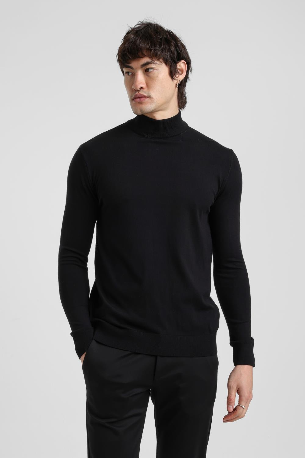 Balıkçı Yaka Siyah Regular Custom Triko 25FWM80003