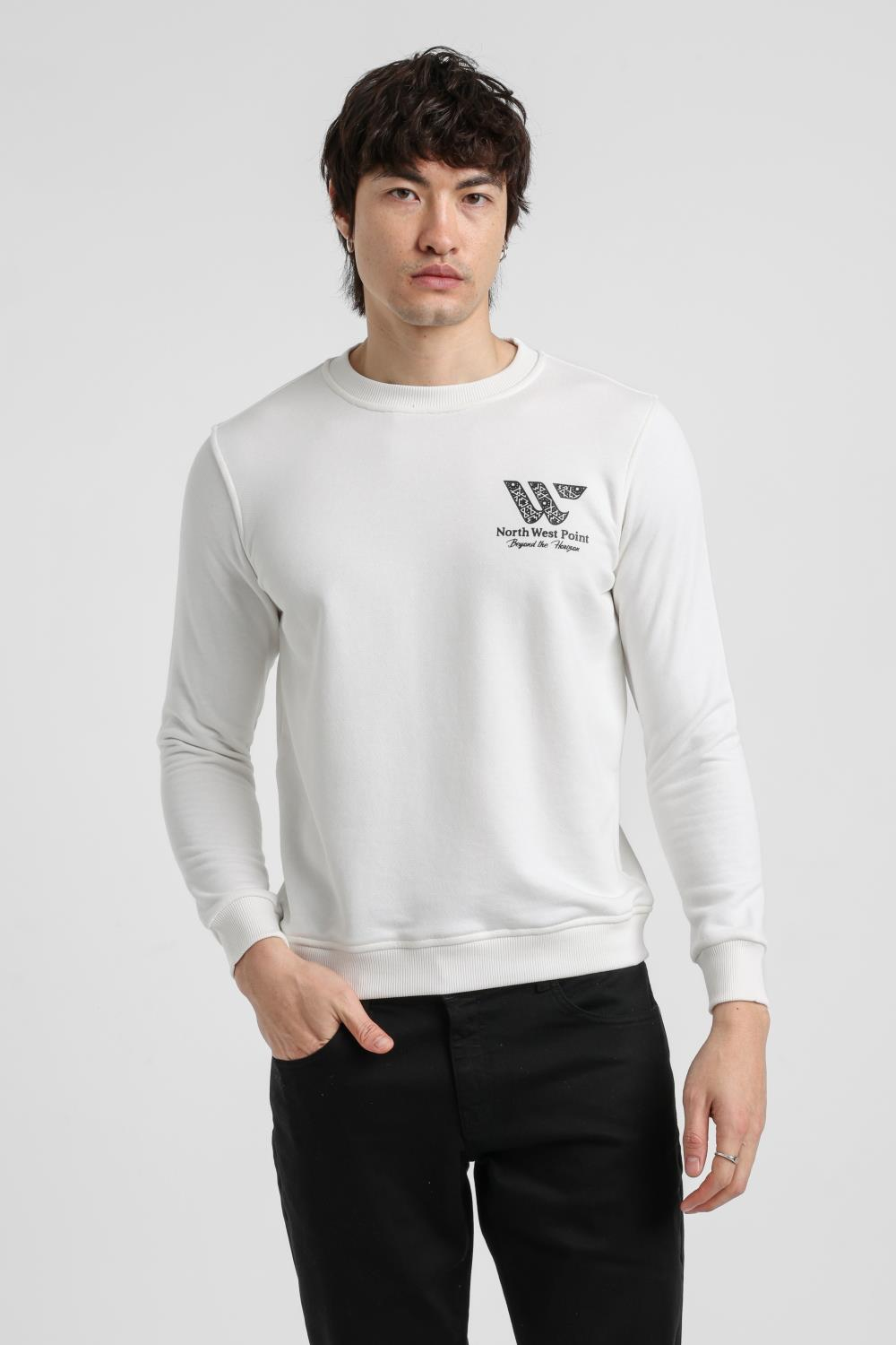 Bisiklet Yaka Ekru Regular Custom Sweatshirt 25FWM60211