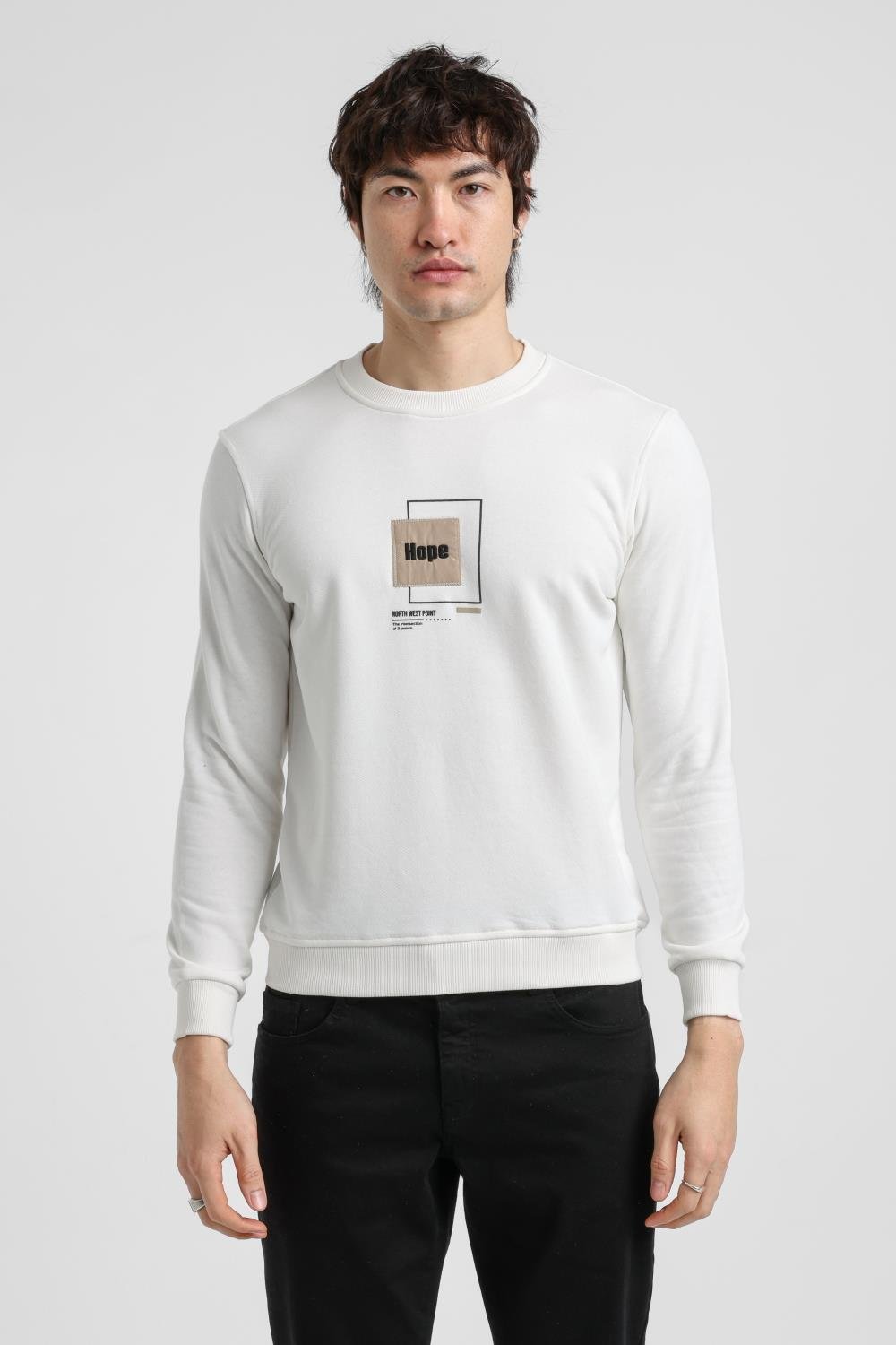 Bisiklet Yaka Ekru Regular Custom Sweatshirt 25FWM60216
