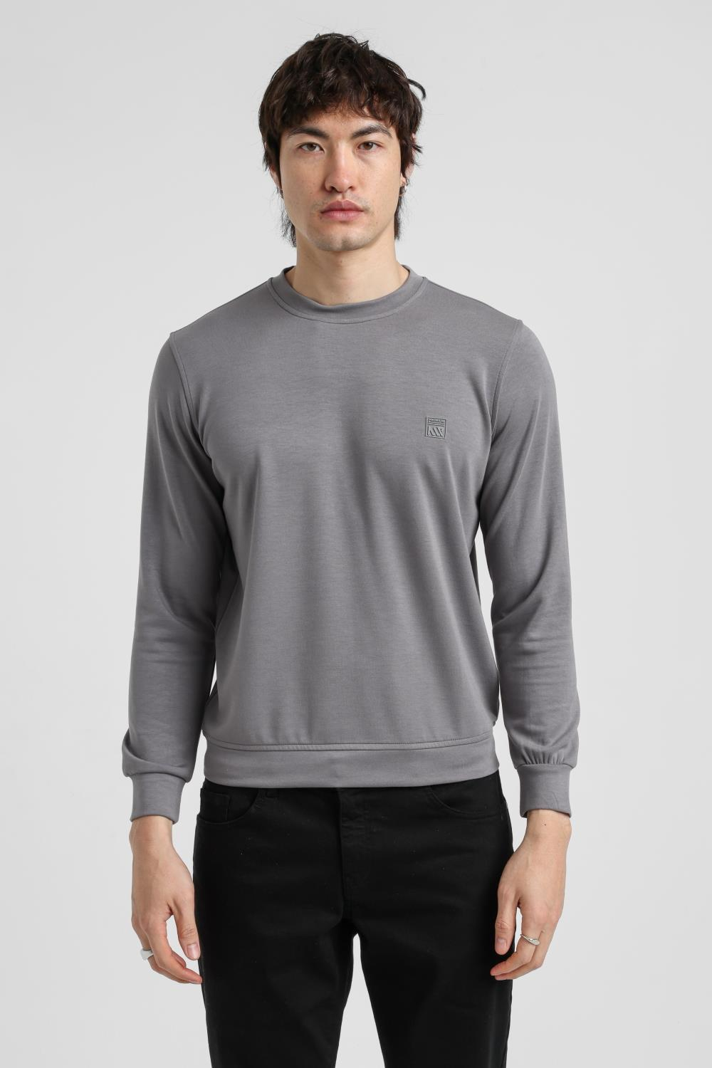 Bisiklet Yaka Gri Melanj Regular Custom Sweatshirt 25FWM50054