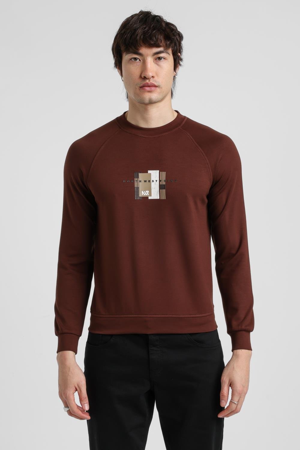Bisiklet Yaka Kahverengi Regular Custom Sweatshirt 25FWM50051