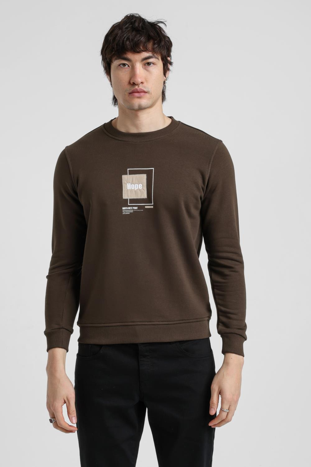 Bisiklet Yaka Kahverengi Regular Custom Sweatshirt 25FWM60216