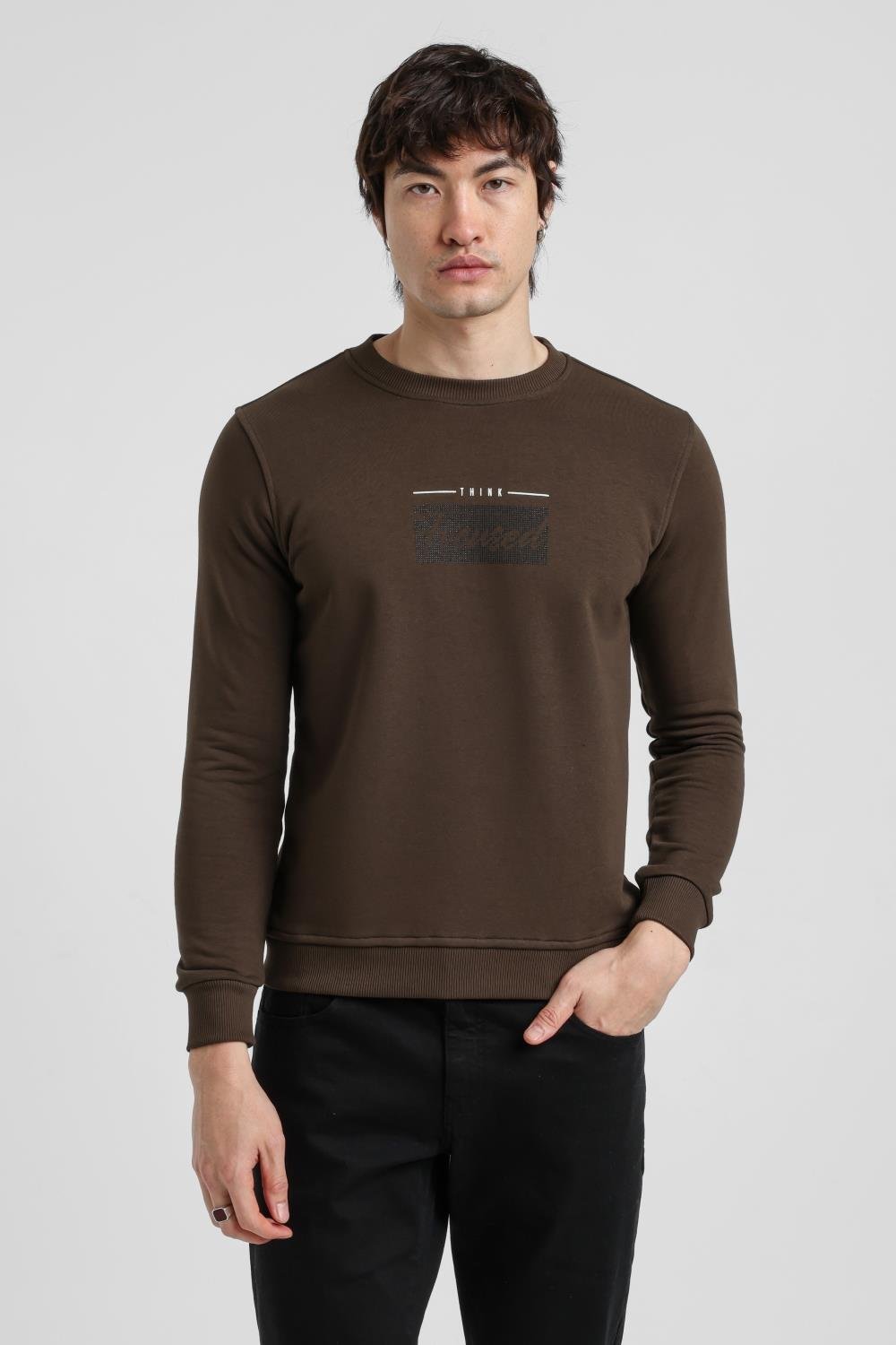 Bisiklet Yaka Kahverengi Regular Custom Sweatshirt 25FWM60217