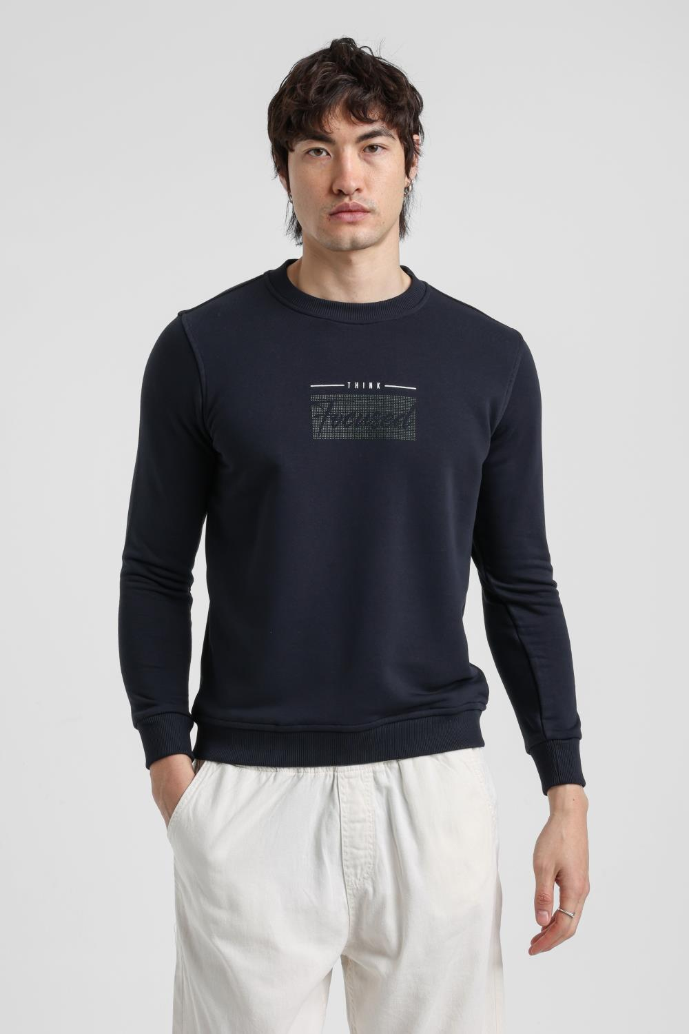Bisiklet Yaka Lacivert Regular Custom Sweatshirt 25FWM60217