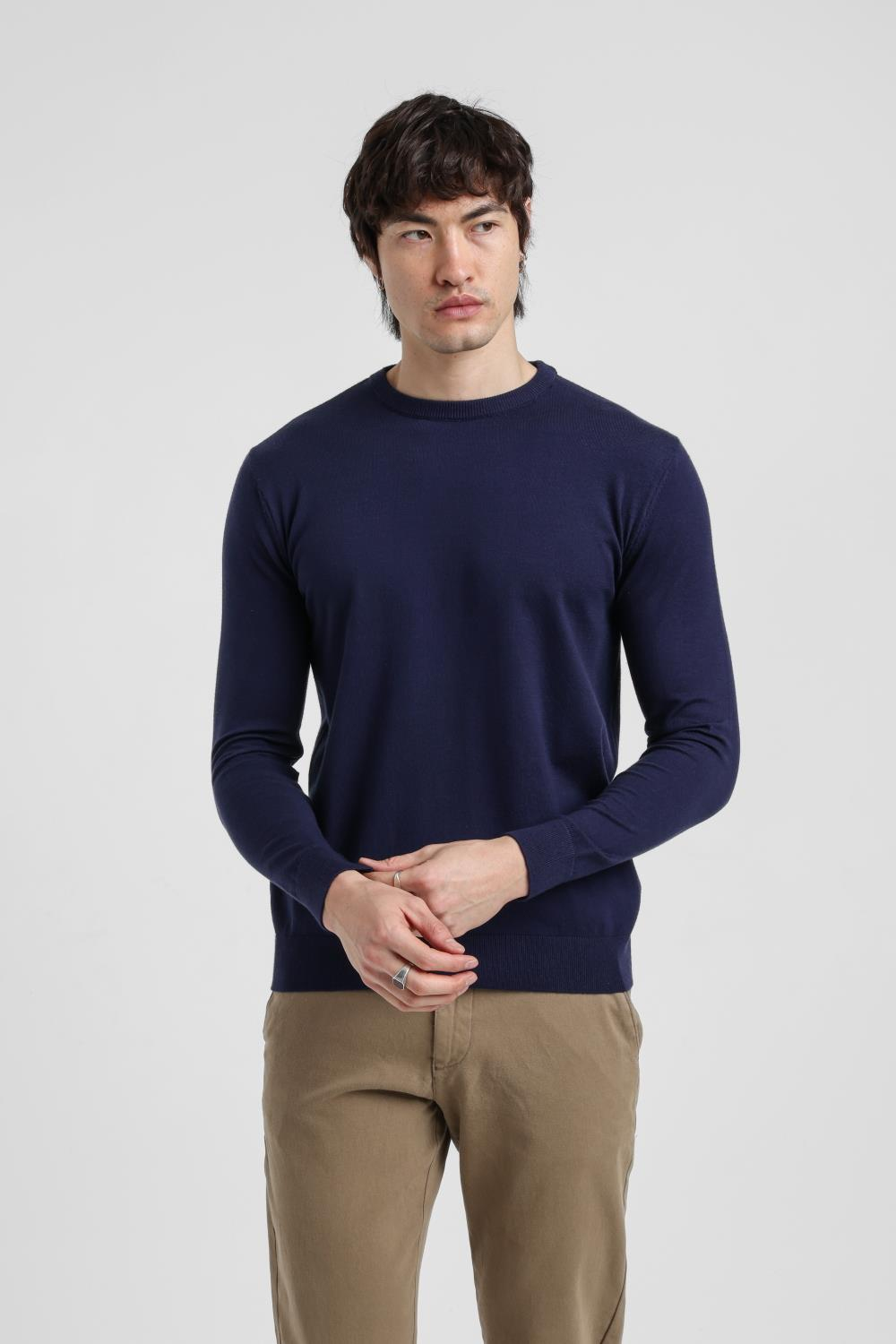 Bisiklet Yaka Lacivert Regular Custom Triko 25FWM80001
