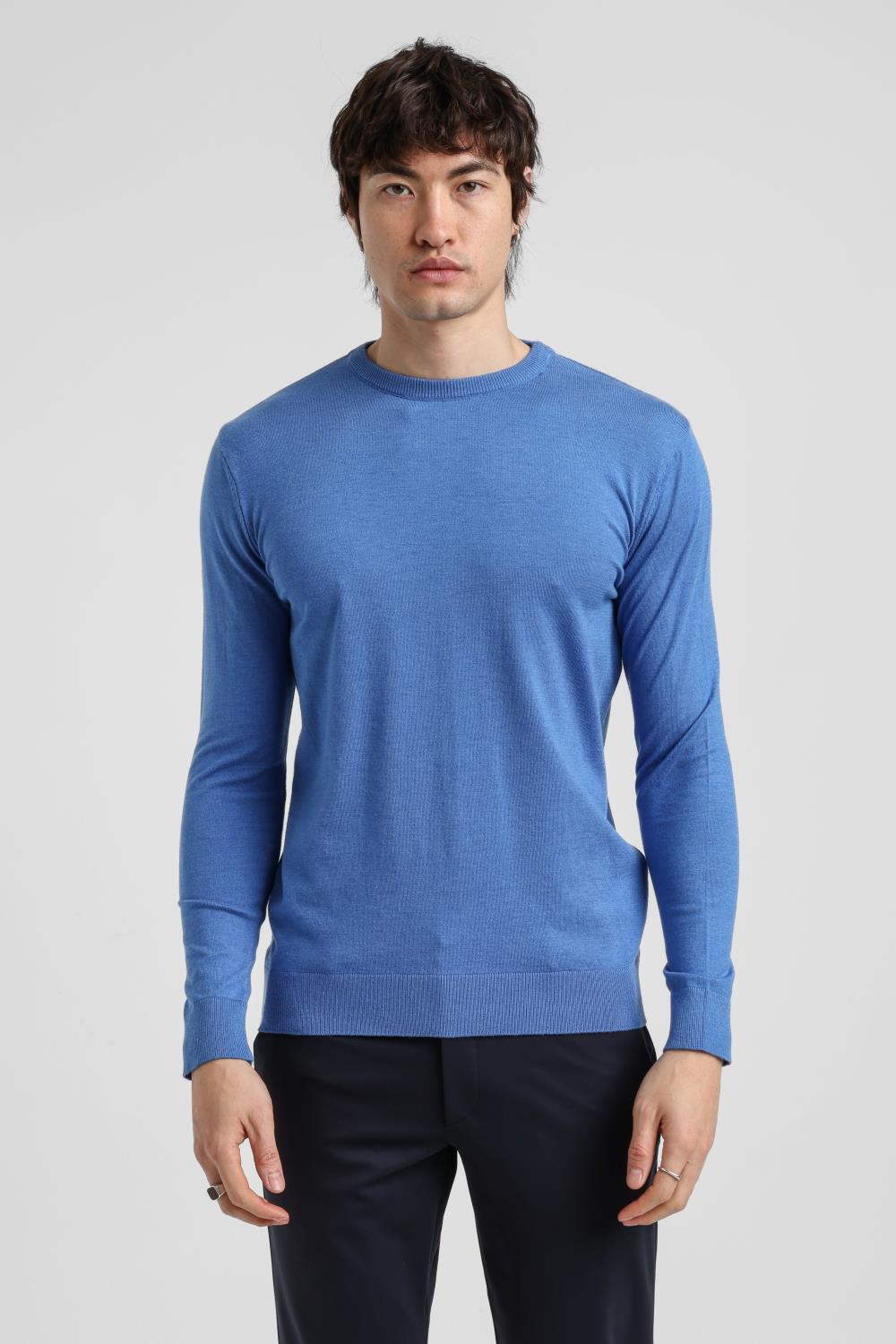 Bisiklet Yaka Mavi Regular Custom Triko 25FWM80001