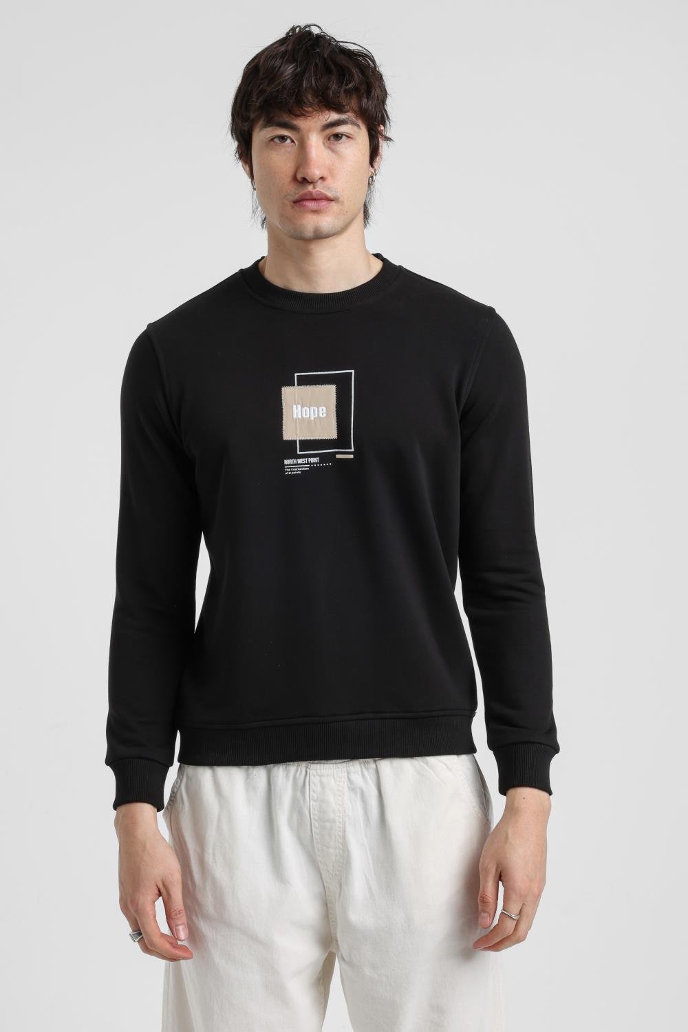 Bisiklet Yaka Siyah Regular Custom Sweatshirt 25FWM60216