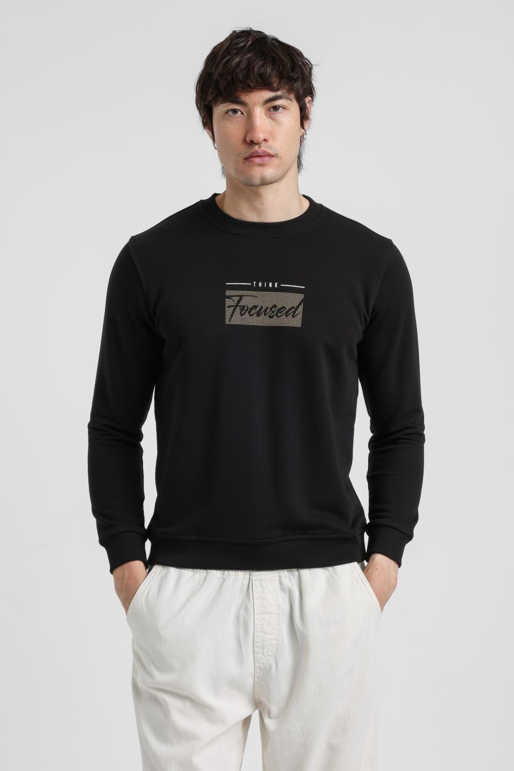 Bisiklet Yaka Siyah Regular Custom Sweatshirt 25FWM60217