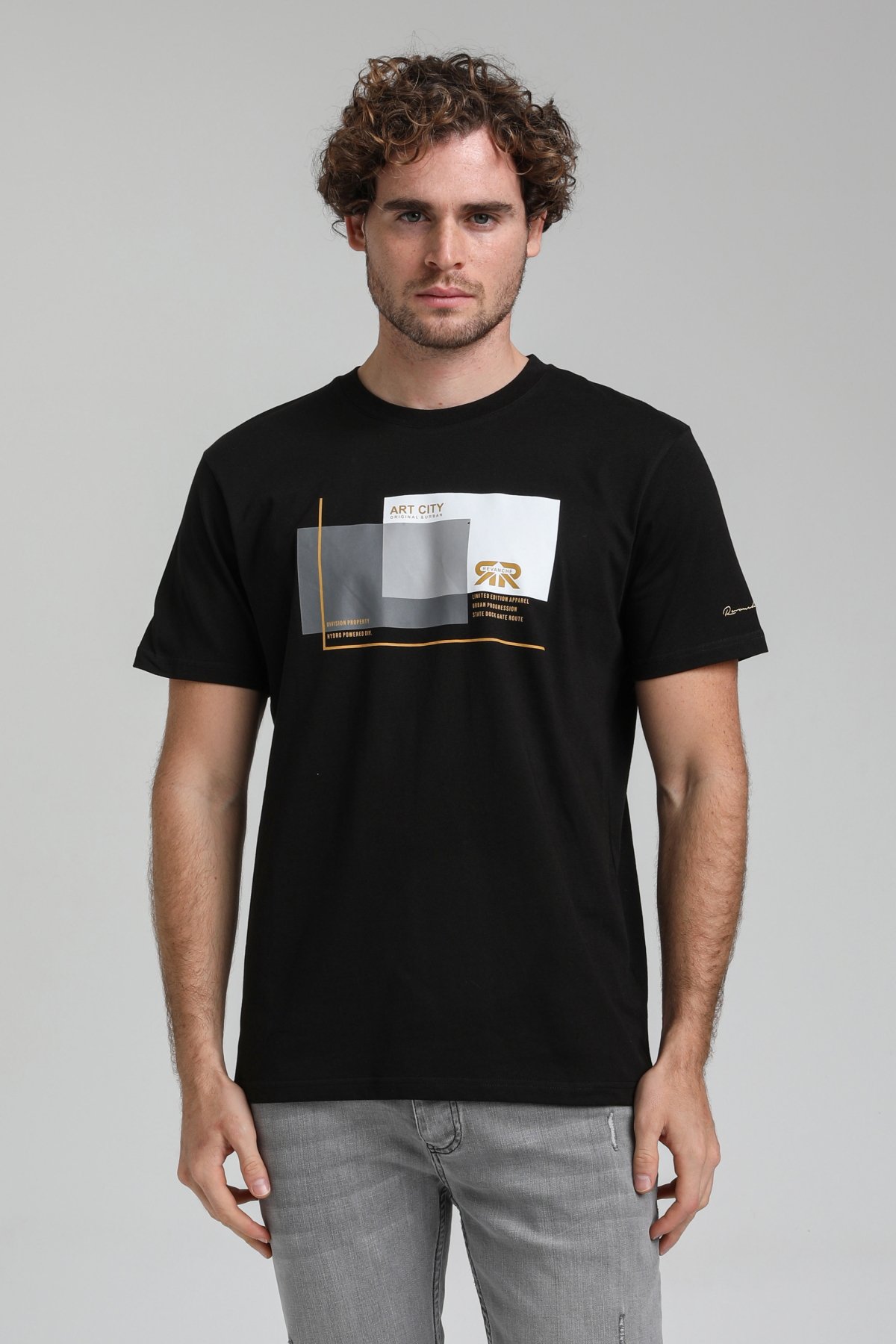 Pamuklu yumuşak kumaşıyla, ince ribana şeritli yuvarlak yakalı, su bazlı baskı detaylı, etek ucu düz kesimli, kısa kollu erkek bisiklet yaka regular custom tişört