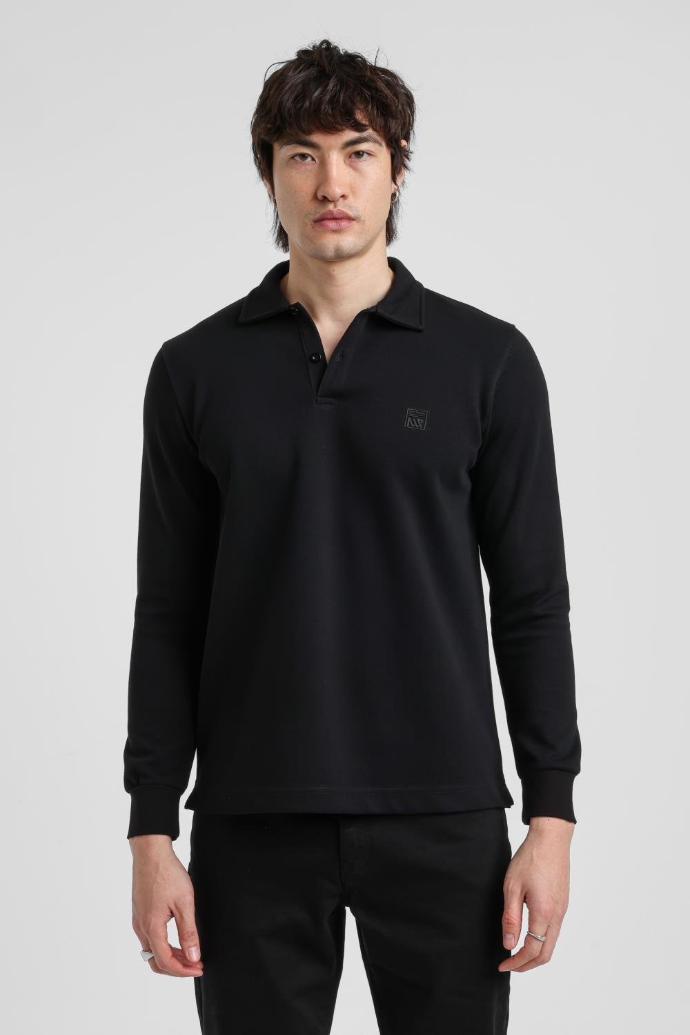 Polo Yaka Siyah Regular Custom Sweatshirt 25FWM62002
